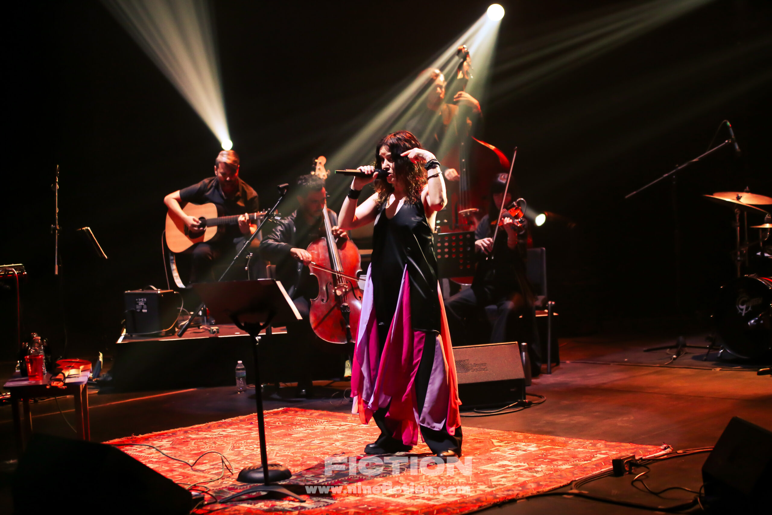 A las 21:10h, el “Lado este” iniciaba el desenchufado encuentro de Sara con sus paisanos, quien firme y al centro del escenario, emitía la bienvenida, contextualizando lo que se venía y dando paso a “Un tigre en mi jardín”, quizá de las más apegadas a su versión original del mítico Fulgor.