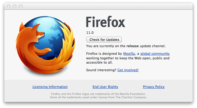De un tiempo a la fecha Mozilla se pinta de colores dándonos más y más actualizaciones del navegador favorito de muchos internautas: Firefox Ver. 11.0. Presentando varias mejoras y en una aparente competencia con Chrome de Google. Si tú eres uno de los que usa este software es momento de actualizar, yo lo estoy haciendo. En estos momentos preguntamos ¿cuando saldrá la versión 12?