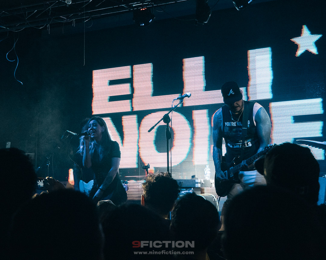 De blanco a negro, de sus inicios al presente. Cerca de las 21:00 horas, como estaba pautado con anterioridad, contra todo pronóstico tras el retraso inicial, Elli Noise apareció en el escenario. La banda, con Mariana Priego en la voz, se mostró radiante y cercana, conversando con el público y bromeando sobre su edad y el paso de los años; emprendieron un viaje en el tiempo al interpretar de forma íntegra y en orden su álbum debut, Aire Frío, una joya para los fans de la vieja guardia. Los integrantes de la agrupación interactuaron todo el tiempo con el público, preguntando qué tema seguía y si alguien había escuchado el disco completo, reiterando que aunque fuera así, en está ocasión sería totalmente en vivo. Escuchar temas como «Rooly», «Qué fue mejor» o «Sin respirar», después de 20 años, fue un regalo para los asistentes, una mezcla de nostalgia y vigencia.